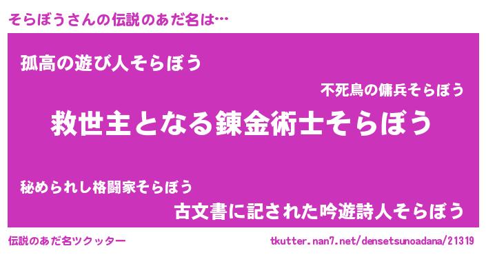 | ヘコむあだ名 | 『そらっちょ』『そらぼう(震え声)』 |