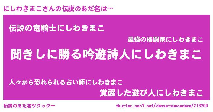 | 意味不明あだ名 | 『永久保存にしわきまこ』 |