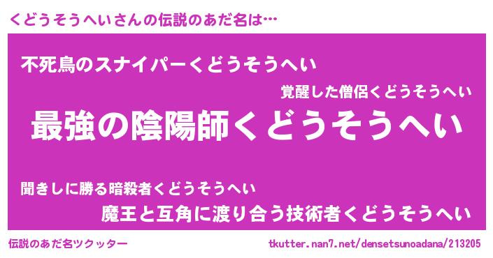 | 意味不明あだ名 | 『くどうそうへいフォーエバー』 |