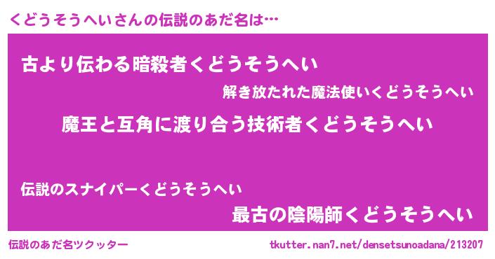 | 意味不明あだ名 | 『自称くどうそうへい』 |