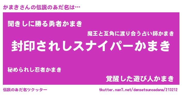 | 意味不明あだ名 | 『ペロリンかまき』『自称かまき』 |