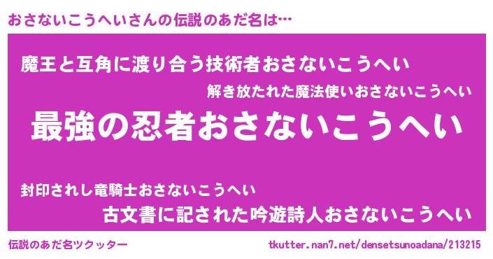 | 意味不明あだ名 | 『自称おさないこうへい』 |