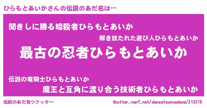 | 女子向けラノベタイトル風あだ名 | 『ひらもとあいかアンティーク』 |