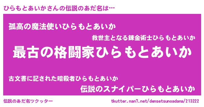 | 意味不明あだ名 | 『ひらもとあいかフォーエバー』 |