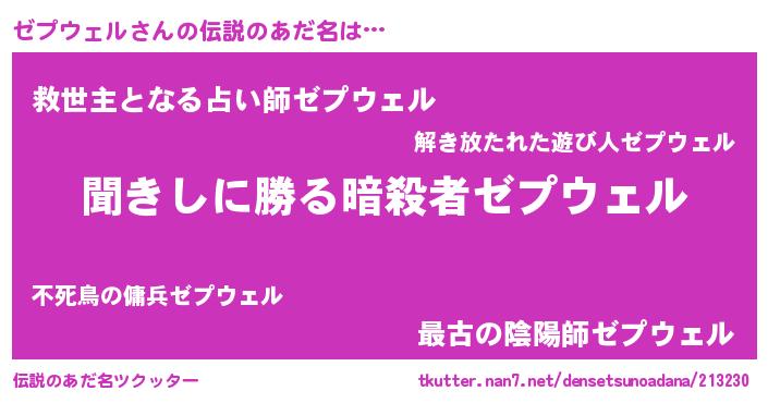| 意味不明あだ名 | 『永久保存ゼプウェル』 |