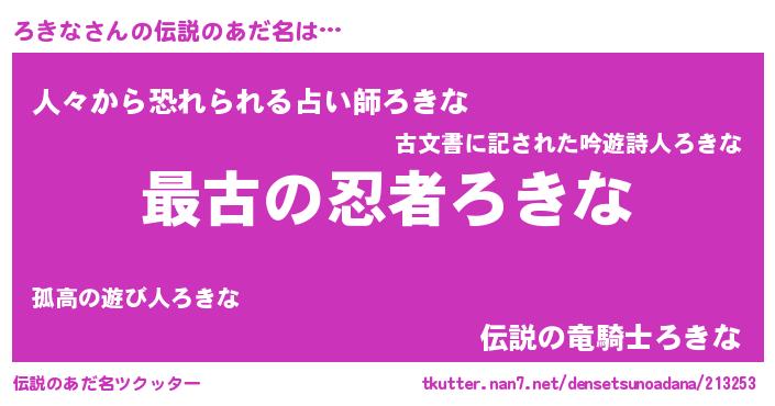 | 意味不明あだ名 | 『ろきなフォーエバー』『自称ろきな』 |