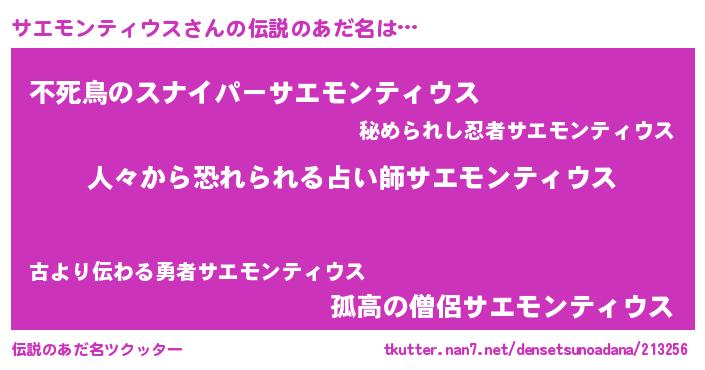 | 意味不明あだ名 | 『自称サエモンティウス』 |