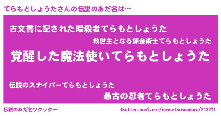 | 意味不明あだ名 | 『とにかく怪しいてらもとしょうた』 |