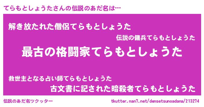 | 意味不明あだ名 | 『てらもとしょうたフォーエバー』 |
