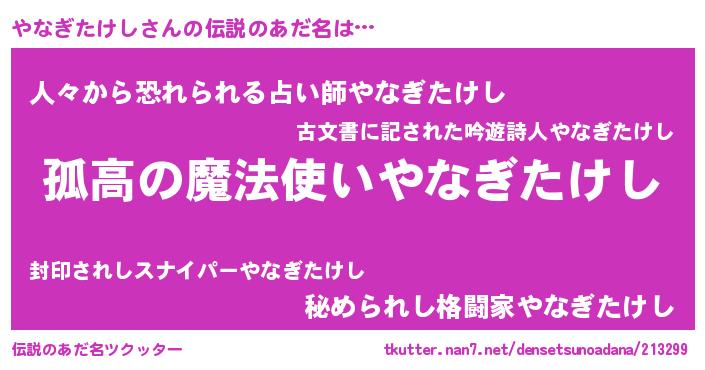 | ポケモン風あだ名 | 『ヒヤナギタケシ』『メロヤッナ』 |