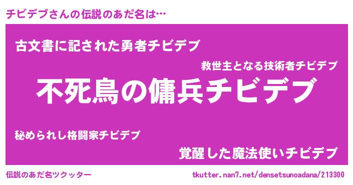 | ヒーロー風カッコイイあだ名 | 『ウルトラ戦士チビデブ』『仮面チビダー』 |