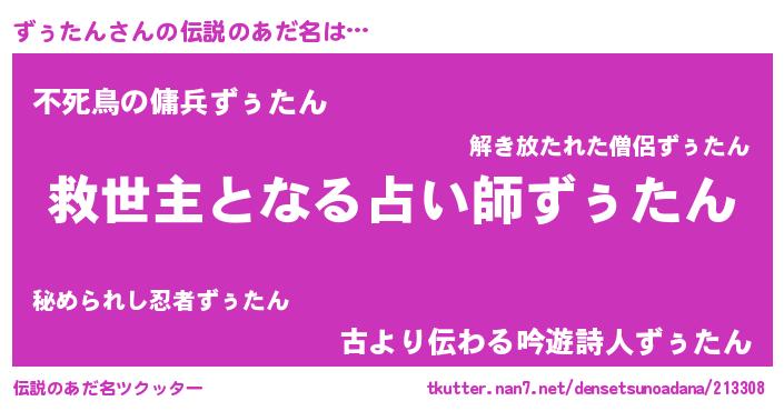 | 男性向けラノベタイトル風あだ名 | 『Re:ずぅたんから始める異世界生活』 |
