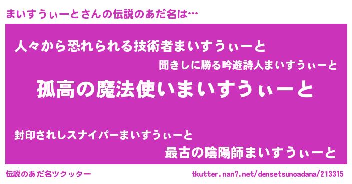 | 意味不明あだ名 | 『とにかく怪しいまいすうぃーと』 |