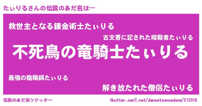 | 女子向けラノベタイトル風あだ名 | 『闇のたぃりる』『たぃりる恋絵巻』 |