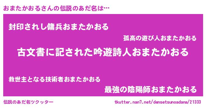 | 欧米人風あだ名 | 『ケンブリッジおまたかおる』 |