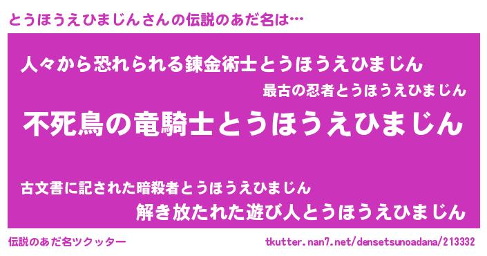| 胡散臭い通販商品みたいなあだ名 | 『世界中を虜にした100年もののヴィンテージワイン…その名も「とうほうえひまじん」』 |