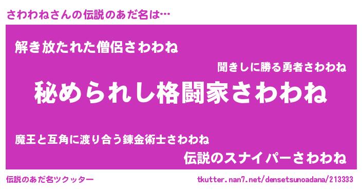 | ファンタジー風あだ名 | 『エターナルサワワネー』『ゼサワトゥ』 |