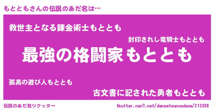 | 意味不明あだ名 | 『住所不定無職もととも(9歳)』 |