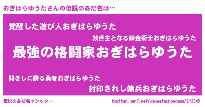 | ヒーロー風カッコイイあだ名 | 『ウルトラおぎはらゆうたマン』 |