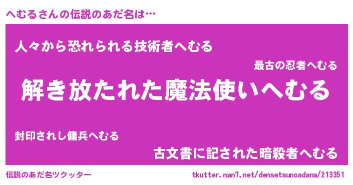 | 意味不明あだ名 | 『住所不定無職へむる(4歳)』 |