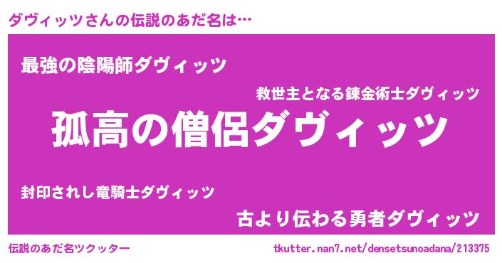 | ヒーロー風カッコイイあだ名 | 『暗黒騎士ダヴ』『究極戦士ダヴィッツ』 |
