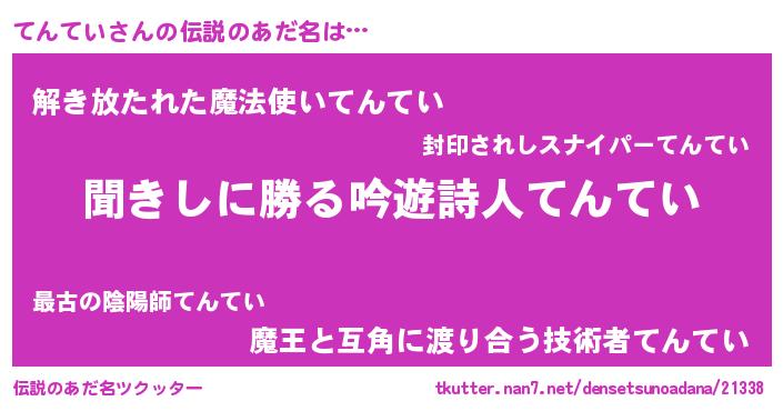 | 意味不明あだ名 | 『永久保存てんてい』『自称てんてい』 |