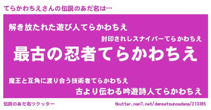 | 意味不明あだ名 | 『自称てらかわちえ』 |