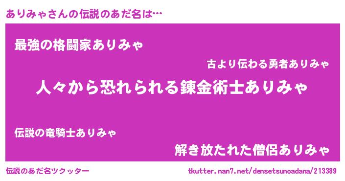 | 胡散臭い通販商品みたいなあだ名 | 『ガンによく効く冬虫夏草…その名も「ありみゃ」』 |