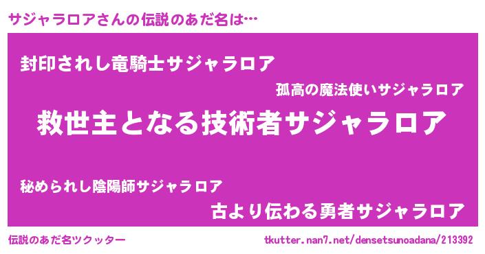 | 自動車の名前っぽいあだ名 | 『サンR』『サウディ』『サジティマ』 |