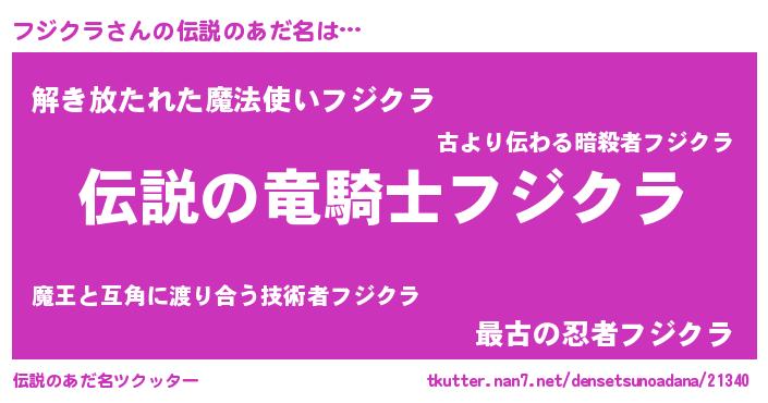 | 男性向けラノベタイトル風あだ名 | 『フジクラの憂鬱』『フジクラスレイヤー』 |