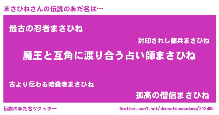 | 女子向けラノベタイトル風あだ名 | 『まさひね恋絵巻』『まさひねの婚約者』 |