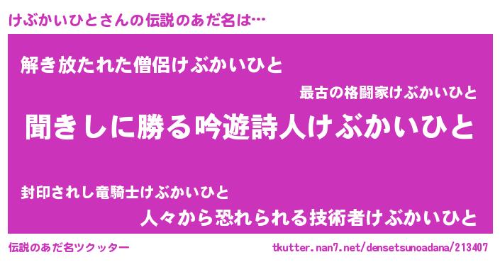 | ポケモン風あだ名 | 『ケブゴンZ』『ケブキング』 |