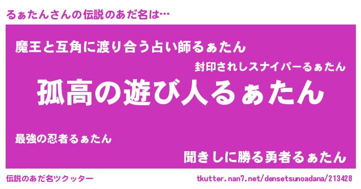 | ヘコむあだ名 | 『るぁぷりん』『るぁたん(苦笑)』 |