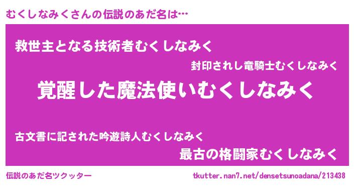 | ポケモン風あだ名 | 『ヒムクシナミク』『ムックウザ』 |