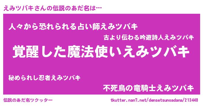 | ヒーロー風カッコイイあだ名 | 『天弓騎士エミ』『天空の使者えみツバキ』 |