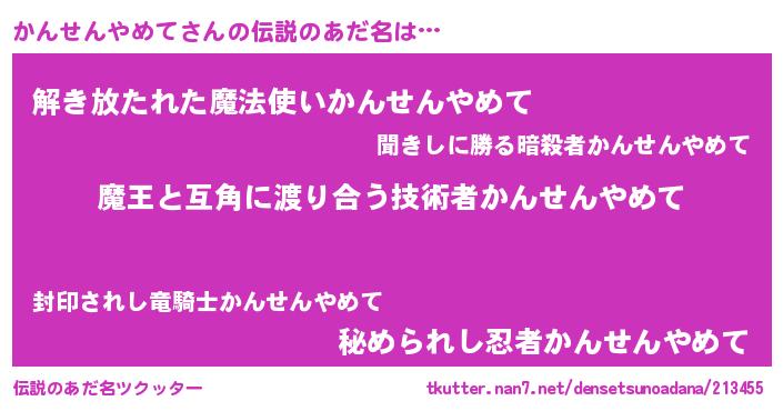 | ヒーロー風カッコイイあだ名 | 『愛の使者かんせんやめて』 |