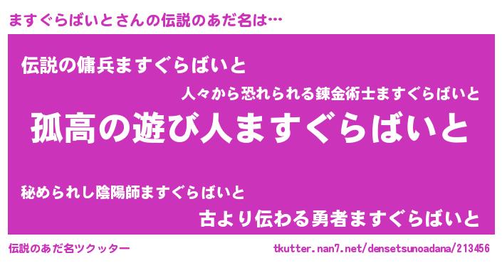 | 意味不明あだ名 | 『とにかく怪しいますぐらばいと』 |
