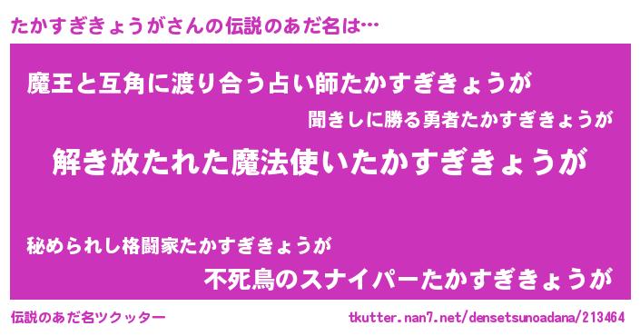| 男性向けラノベタイトル風あだ名 | 『たかすぎきょうがの嫁は女の子じゃないと思った?』 |