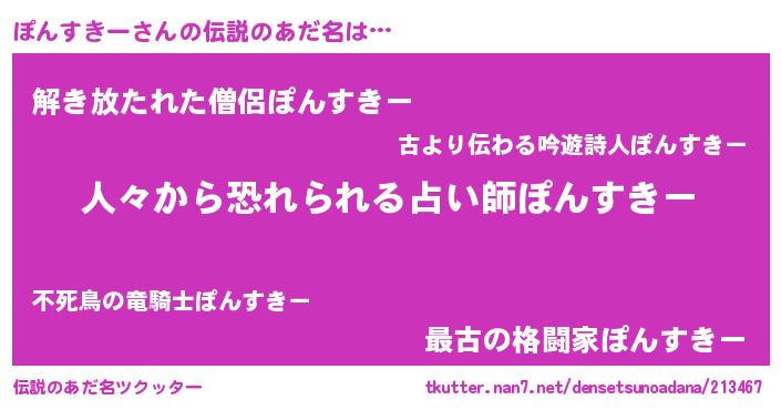 | ヒーロー風カッコイイあだ名 | 『友情の使者ぽんすきー』『仮面ポンダー』 |