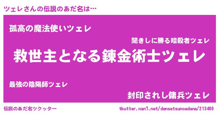| ヒーロー風カッコイイあだ名 | 『天空の使者ツェレ』『暗黒騎士ツェ』 |