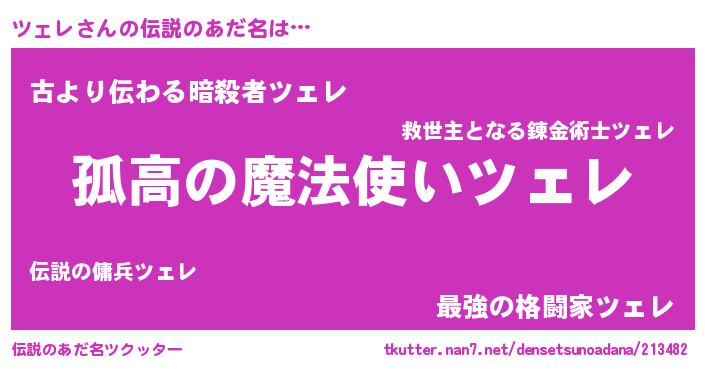 | ヒーロー風カッコイイあだ名 | 『超時空戦士ツェレ』『銀牙騎士ツェ』 |