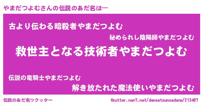 | ヘコむあだ名 | 『やまだつよむ(笑)』『やまっ子』 |