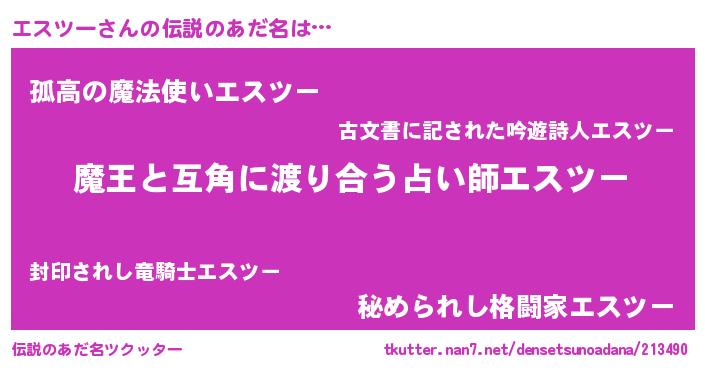 | ヒーロー風カッコイイあだ名 | 『サイバー戦士エスツー』『黄金騎士エス』 |