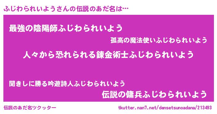 | ヒーロー風カッコイイあだ名 | 『正義の使者ふじわられいよう』 |