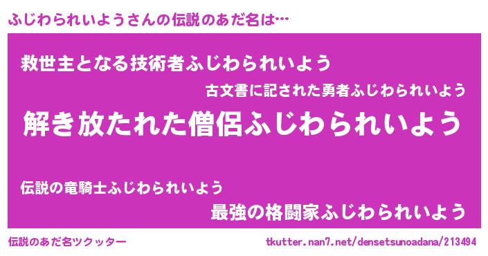 | 意味不明あだ名 | 『自称ふじわられいよう』 |