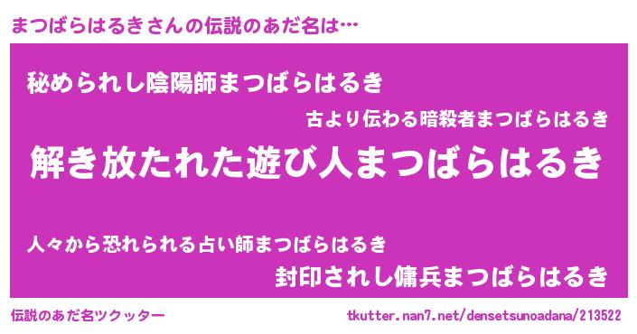 | 意味不明あだ名 | 『とにかく怪しいまつばらはるき』 |