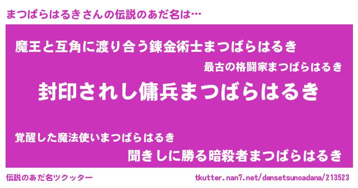| 胡散臭い通販商品みたいなあだ名 | 『億万長者になれる水晶球…その名も「まつばらはるき」』 |