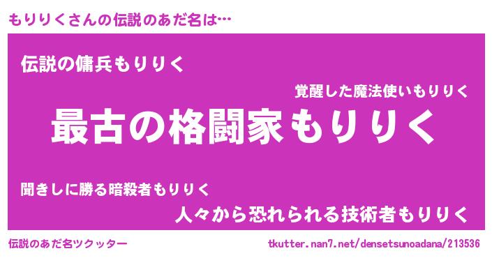 | ファンタジー風あだ名 | 『エターナルモリリクー』『モリフェル』 |