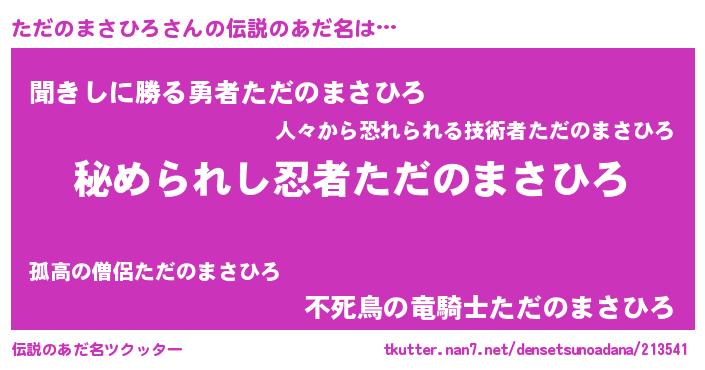 | 意味不明あだ名 | 『ただのまさひろフォーエバー』 |