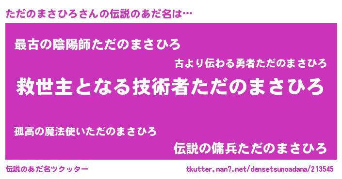 | 男性向けラノベタイトル風あだ名 | 『ノーゲーム・ノータダノマサヒロ』 |